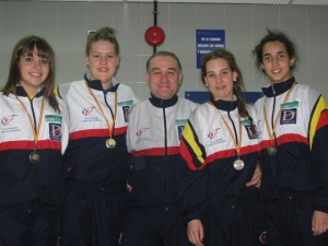 La competición por la mañana comenzó con las poules individuales donde Marcos García, presa de los nervios, hacía 2 victorias y 3 derrotas pasando al cuadro deoctavos con el último nº: el 16. Por parte de las chicas, un poco más entonadas, Macarena Centenera y Gracia Horno ganaban 3 asaltos perdiendo 2 lo que les daba los números 9 y 10 respectivamente.