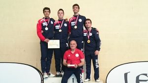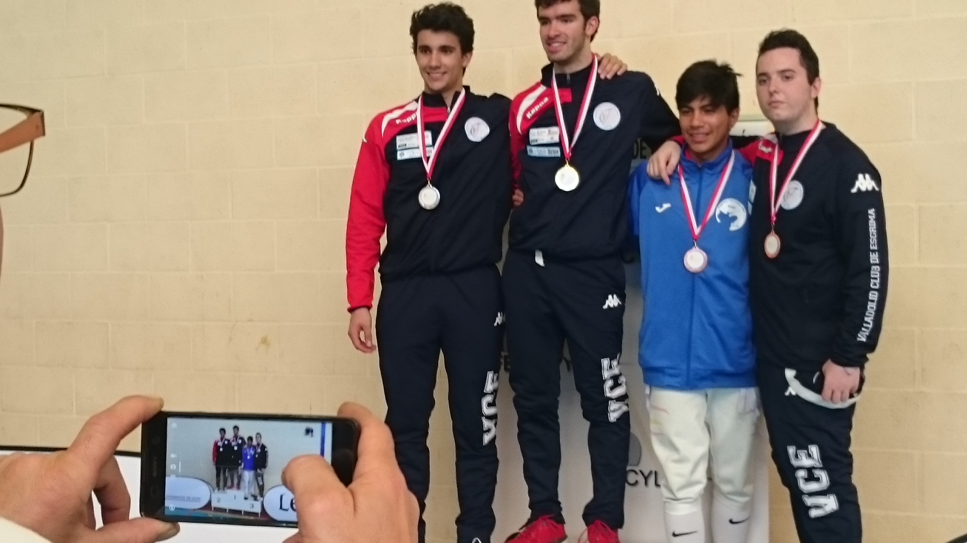 Por EQUIPOS, el VCE con Noé Bermejo, Guille Nieto, Daniel Alarcia y Fernando Nogués, vencían a la Sala de Esgrima Burgos ganándose el ORO y proclamándose CAMPEONES de Castilla y León en Espada Masculina Junior.