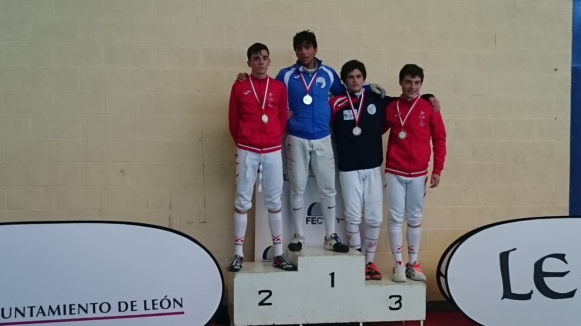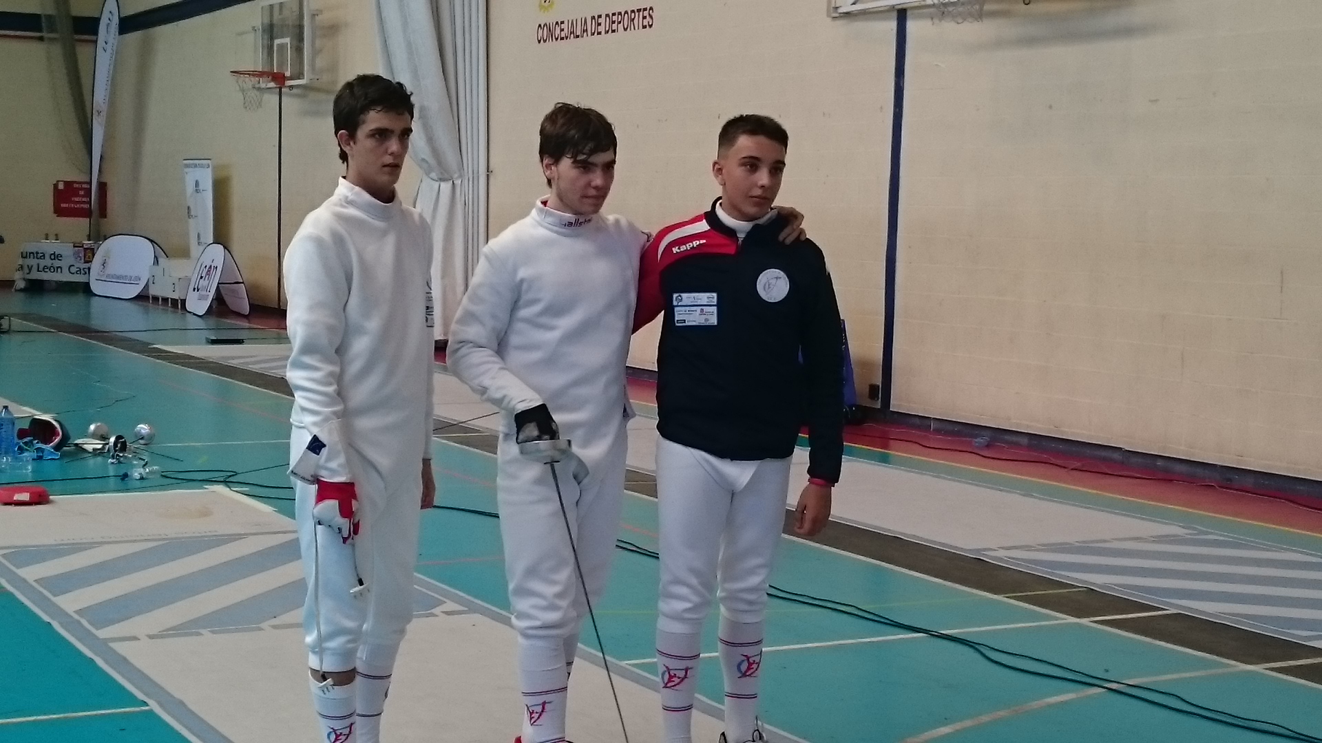 En la ESPADA MASCULINA y tras la primera fase de grupos, Daniel Alarcia fue el único que venció todos sus asaltos pasando con el número 1 gracias a sus 5 victorias. Guille Nieto 5º y Noé 6º, fueron los siguientes con 4 victorias. Tras las primeras eliminaciones, el VCE se plantaba en la fase de 16, con 8 clasificados. Tras las eliminatorias de esta fase, se clasificaban para la final de 8, Fernando Nogués, Fernando Prieto, Guillermo Nieto y Noé Bermejo, otra vez el 50% de la fase. Nogués vencía a Prieto en un duelo fratricida, clasificándose brillantemente para semifinales, mientras sus compañeros Guillermo y Noé también se metían en las medallas, venciendo a los del SAES de Burgos, Mahamud y Alegre, respectivamente.