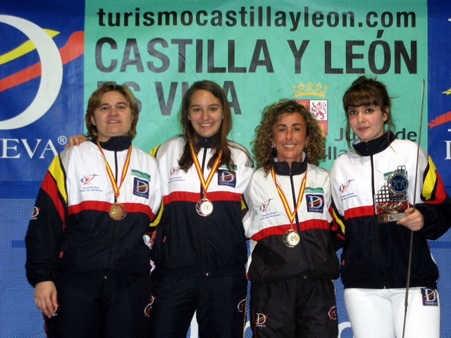En categoría femenina, menor participación con 11 tiradoras de todas las categorías posibles. En cuartos de final, Niobe Alonso vencía a la novel Marta Oñate por 15 a 13, a pesar de que comenzaba con 0-6 en contra; Laura Gutiérrez derrotaba a la infantil Sara Barbero por 15 a 10, partiendo también de un 0-6 en contra; Lorena Núñez vencía a Alicia Lalana por 15 a 8 y Charo González derrotaba a Isabel Torres por 15 a 13.