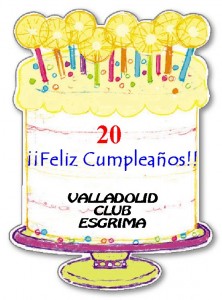 Este año, el Valladolid Club de Esgrima celebra su 20 aniversario de actividad. Para ello, el 1 de Abril , se realizarán una serie de eventos: a las 20 horas, Gala en el Patio Herreriano con la presentación y reconocimientos en el salón de actos. Después vino español, y más tarde, FIESTA en el Molly Malone. Deseamos y esperamos que todos aquellos que en su día, y actualmente, se sientan unidos a este Club, acudan  en tan memorable fecha a festejar todos juntos el cumpleaños; y como «20 años no es nada», desear a todos vernos dentro de otros 20. ¡¡FELICIDADES!!