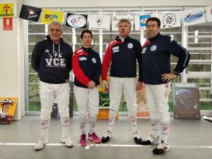 Daniel Alarcia, Noe Bermejo y Guillermo Nieto en la I Copa del Mundo Junior del año en Udine, Italia.Dora, Macarena y Maria participaron en Hungría bajo las órdenes de Ángel Fernández, director del Equipo Nacional Femenina.Equipazo JUNIOR en el TNR de Vitoria.Dora en el podium con el trofeo de CAMPEONA del Torneo Nacional de AlcobendasMaría Mateos en la COPA del MUNDO JUNIOR de Bratislava.Juanra, Carmen, Alfonso y Ángel en Santiago fueron la representación del VCE en el XII OPEN COMPOS-Trofeo Jose Goás del Compostela Esgrima.Guille, Rodri, Alex, Javi, Jorge, Gonzalo y Álvaro. Nuestros más jóvenes mosqueteros, participaron en el TRR M8, M10 y M12 de Burgos, consiguiendo 4 medallas.El equipo masculino CADETE en el TNR M17 de LOGROÑO. Todos los chicos de la foto y Miriam que participó el domingo.Ricardo Candeias consiguió un BRONCE en el TNR ABS de LOGROÑO. El equipo masculino, consigue permanencia en LIGA ORO