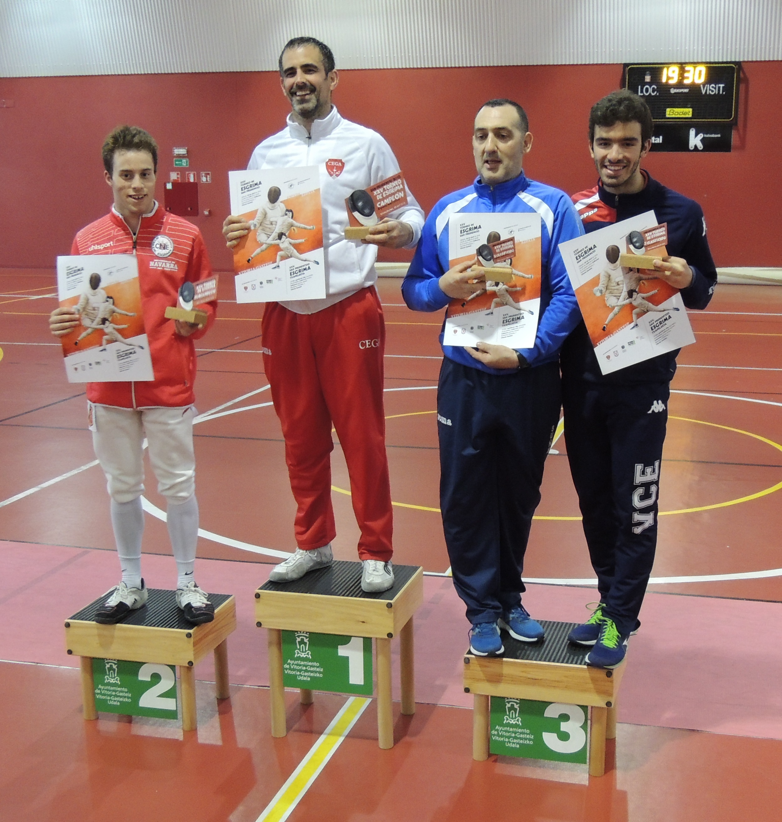 Bermejo con 5V y 1D y Merino con las mismas, pasaron tras las poules con los números 3 y 5. Exentos, superaron las primeras eliminatorias hasta entrar en la final de 8, donde Juanra cayó con Germán Ruiz de Bilbao por 15 a 10 finalizando en la 5ª posición, mientras su compañero ganaba a Pacheco de Santander clasificándose para las semis. Ya en el podium, contra Yago Navarro del CNE, cae por un apretadísimo 15 a 14, ganándose un merecido BRONCE.