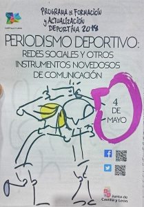 El viernes 4 de mayo en horario de 15.30 a 21.00h, tuvo lugar en el edificio de Usos Múltiples de la Vega en Arroyo de la Encomienda, la jornada de Periodismo Deportivo: redes sociales y otros instrumentos novedosos de comunicación.