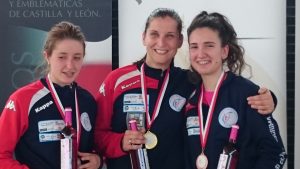 Dora vencía a su compañera María en la revancha de la final del Nacional de Valencia y Naiara caía ante Inés Martín del Segovia. La final ante Dora e Inés comenzó con una amplia ventaja para la del Segovia, que Dora conseguía empatar al final del segundo tiempo. Tras un tercer tiempo magistral, el asalto dio la vuelta para la de Valladolid, que vencía en un alarde de concentración sensacional. Dora Kiskapusi es la nueva CAMPEONA CASTELLANA de ESPADA. Sus compañeras Naiara Moreno y María Mateos, fueron BRONCE acompañándola en el tercer peldaño del podio.