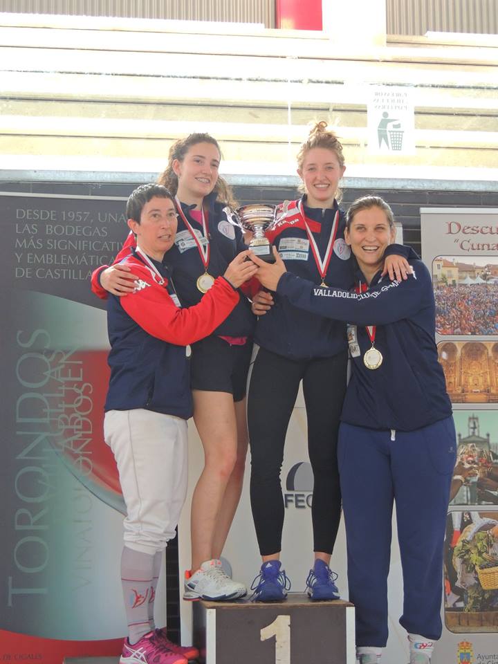 La competición se cerraba con la participación por equipos. En espada femenina, el vencedor y dominador fue el del VALLADOLID, vencedor y campeón de Castilla y León, formado por Dora Kiskapusi, María Mateos, Naiara Moreno y Carmen Hernanz, que vencían en la final a la Sala de Esgrima Burgos.