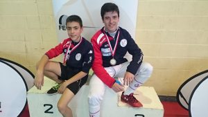 En la ESPADA MASCULINA y tras la primera fase de grupos, Daniel Alarcia fue el único que venció todos sus asaltos pasando con el número 1 gracias a sus 5 victorias. Guille Nieto 5º y Noé 6º, fueron los siguientes con 4 victorias. Tras las primeras eliminaciones, el VCE se plantaba en la fase de 16, con 8 clasificados. Tras las eliminatorias de esta fase, se clasificaban para la final de 8, Fernando Nogués, Fernando Prieto, Guillermo Nieto y Noé Bermejo, otra vez el 50% de la fase. Nogués vencía a Prieto en un duelo fratricida, clasificándose brillantemente para semifinales, mientras sus compañeros Guillermo y Noé también se metían en las medallas, venciendo a los del SAES de Burgos, Mahamud y Alegre, respectivamente.