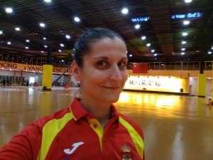 Dora con sus compañeras de la selección española, Alejandra Cisneros, Inés García y Sara Fernández con las que también competirá por equipos, ya se encuentran de concentración en Shanghai. Desde el día 11 de julio, se han trasladado a China, buscando conseguir una correcta adaptación y desarrollar unos entrenamientos especiales que ultimen su preparación. Entrenan en uno de los mayores clubes de Shanghai (cerca de 8.000 socios de diferentes deportes), donde también ha coincidido con el otro VCE del Mundial, Ricardo Candeias, que representa a Portugal en este campeonato.