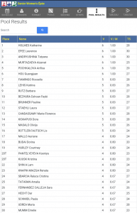 Tras la primera fase de grupo, consiguió 5 victorias con una sola derrota, consiguiendo una brillantísima 14 posición que la clasificó directamente para el cuadro final de 64 el domingo día 22. Con sus compañeras de selección española, las 4 pasaron la ronda de ‘poules’, Alejandra Cisneros (69) e Inés García (88) quedaban eliminadas en su primer cruce, mientras Sara Fernández superaba por 15 a 13 su eliminatoria, entrando con Dora, también entre las 64 mejores.