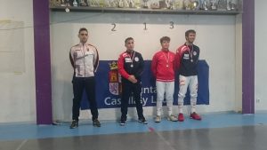 La competición comenzó con la categoría absoluta senior masculina, con 11 chicos inscritos. Tras la primera fase de grupos, los mejores fueron Noé Bermejo con 5 victorias y 1 derrota y Dani Alarcia con 4V y 1D. Tras las primeras eliminatorias, fueron ellos dos los únicos clasificados para la final de 8, venciendo sus asaltos hasta las semifinales. Noé caía ante Yáñez del club El Duque por 15 a 12 mientras Dani vencía a Gonzalo Mahamud del Burgos por un ajustadísimo 15 a 14. Alarcia clasificado para la final contra Yañez, vencía tras un primer tiempo igualado por 15 a 9 al de Medina del Campo y proclamándose VENCEDOR y medalla de ORO del I ranking regional de la temporada, con su compañero Bermejo con el BRONCE.