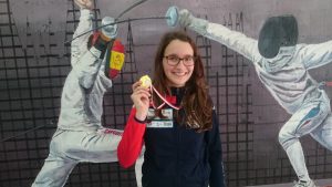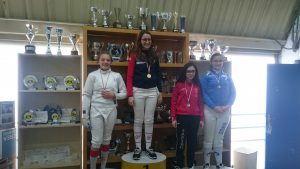 La espada femenina INFANTIL con Lucía Varela y Carlota Muñoz por el Valladolid contó con el dominio desde el principio de Lucía que tras pasar con el número 1 la primera fase y pleno de victorias se emparejó en el tablón de 8 con su compañera Carlota que vencía en el cruce anterior a Jimena Gómez del Duque de Medina. Lucía no daba opción a su compañera que tras caer dignamente finalizaba en la 7ª posición. Ya en semifinales y contra Carla Espinosa de la Sala Burgos, Lucía en un asalto trepidante y muy ajustado se metió brillantemente en la final contra Alejandra Rodríguez del SAES-BU. De nuevo en otro asalto para corazones fuertes, la del Valladolid consiguió imponerse con autoridad y se proclamó CAMPEONA de este VII Ranking Regional y se llevó la medalla de ORO.