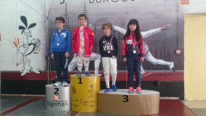 La categoría de los más pequeños la PREBENJAMÍN mixta (M8), contó con la participación de Samuel Álvarez y Álvaro del Val. Tras una buena primera fase con 3 victorias cada uno, en la lucha por las medallas, les tocó enfrentarse uno con el otro. La victoria fue para Álvaro que se clasificó para las semifinales donde se ganó el BRONCE, tras caer con el campeón Alberto Martín por un ajustado 10 a 9. Samuel finalizó el 6º.