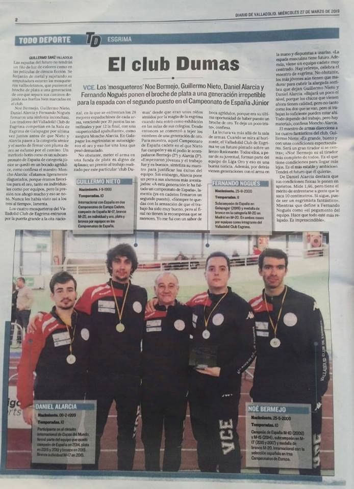 No obstante, meter el arma en una funda de plata es digno de aplauso; un premio al trabajo realizado por este particular ‘club Dumas’ desde que eran unos niños atraídos por la magia de la esgrima cuando ésta entró como exhibición en las aulas de sus colegios. Desde entonces se comenzó a tejer los mimbres de una generación de oro. Para muestra, aquel Campeonato de España cadete en el que Nieto fue campeón y en el podio le acompañaron Bermejo (2º) y Alarcia (3º).