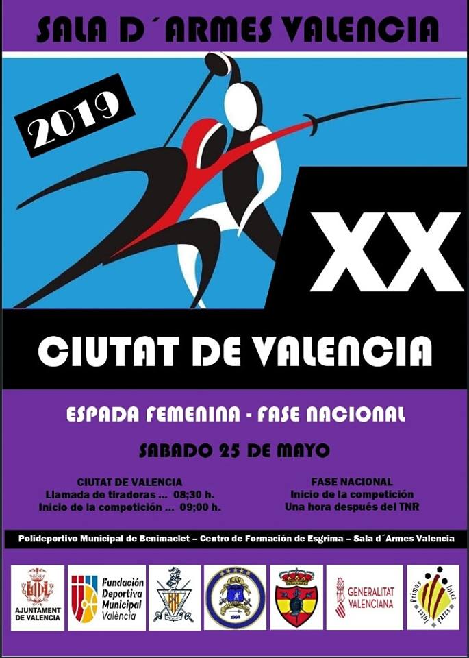 El próximo sábado 25 de mayo, la Sala de Armas de Valencia, organiza el ‘XX Torneo Ciutat de Valencia’ y la Fase Nacional de Equipos en sus instalaciones en el Polideportivo Municipal de Benimaclet.