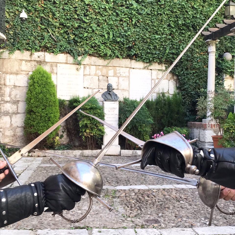 El domingo por la mañana y con el lema ‘Haz Deporte, practica Cultura’, recreamos con la Esgrima Escénica y con el Maestro Merino y con Xose Piñeiro, el suceso histórico de la muerte en duelo a espada de Gaspar de Ezpeleta que fue la prueba documentada que dio lugar a la certificación de la vivienda real de Cervantes y actual casa Museo.