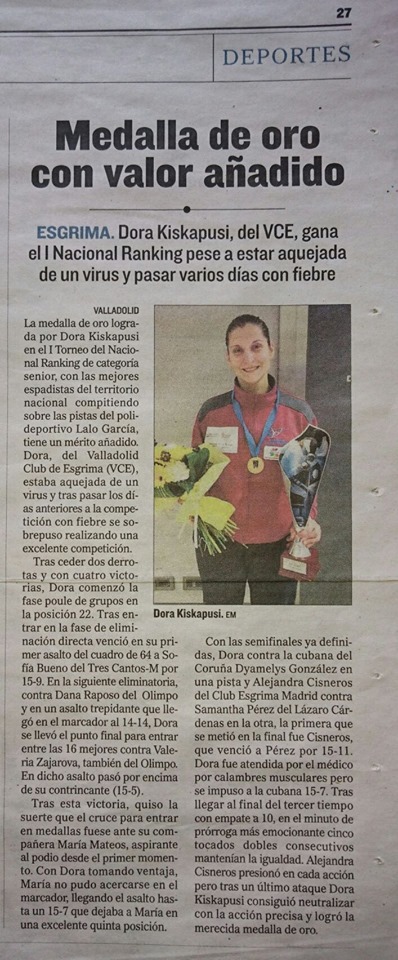 Algunas reacciones al ORO de Dora Kiskapusi en los medios. - Valladolid Club Esgrima