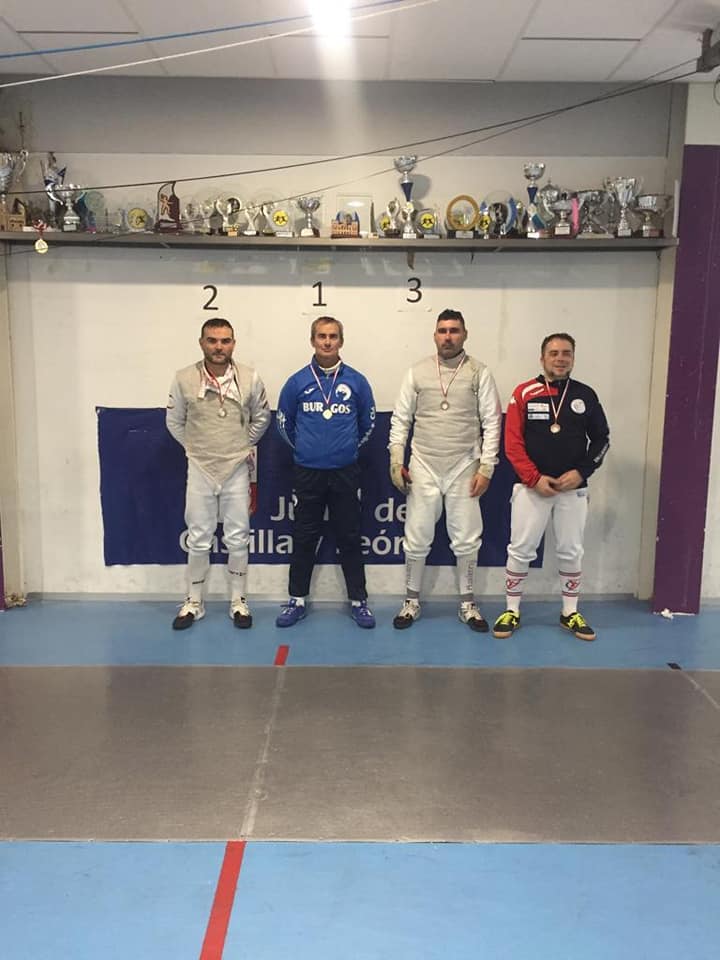 Se se sumó así otra PLATA a la de Nicoleta. En esta misma categoría, también se colgaron medallas, pero de BRONCE, Chechu Ortega y Félix Blanco. La última medalla fue para Javier Alaiz que se hizo con el BRONCE de florete de veteranos, cerrando así las 5 conseguidas por el equipo pucelano.