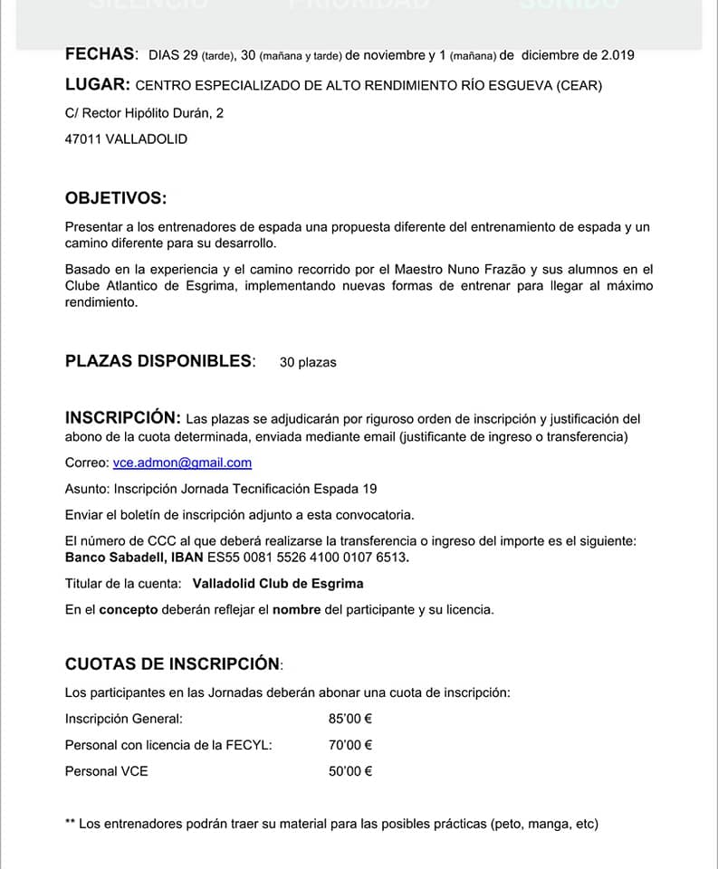Boletín inscripción Jornadas Espada 19