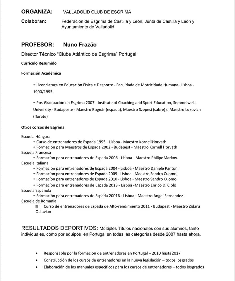 Anunciamos las nuevas JORNADAS TÉCNICAS de ESPADA que Nuno Frazao, Maestro portugués, repite con nosotros en Valladolid.