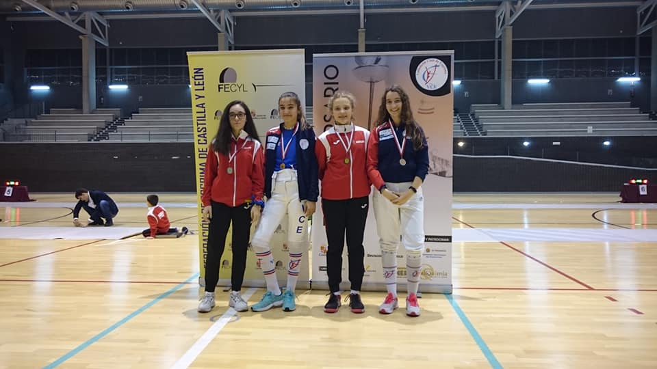 Las chicas M15 daban las últimas medallas al VCE del día en una gran competición para Lucía Varela que con el pleno de victorias en la fase poule llegaba hasta las semifinales contra su compañera Gabriela Álvarez. Gabriela, de la categoría M13 se desquitaba ante Lucía con un 15 a 13, para entrar ahora en la final que no pudo en su categoría. Ante la del Burgos Carla Espinosa, ganaba el ORO y su segunda medalla del día, en una final dominada por completo, por 15 a 9, proclamándose CAMPEONA de la categoría INFANTIL y con Lucía Varela en el BRONCE.