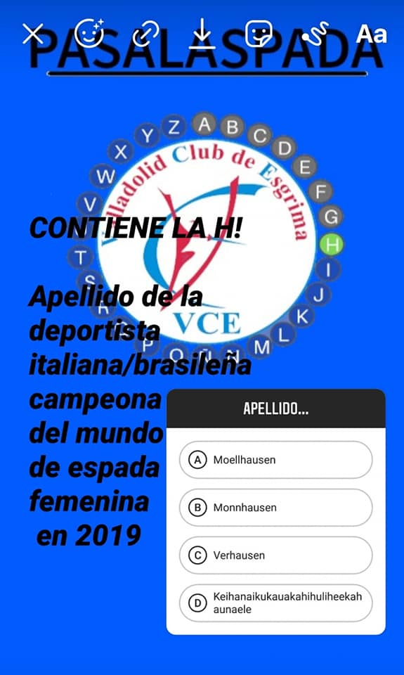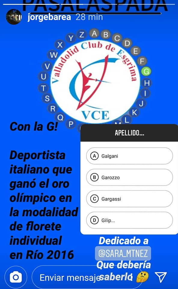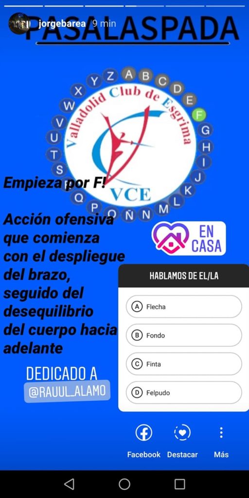 Todos los días a las 17h desde las historias del perfil de @jorgebarea una preguntita de esgrima con una letra del #abecedario.