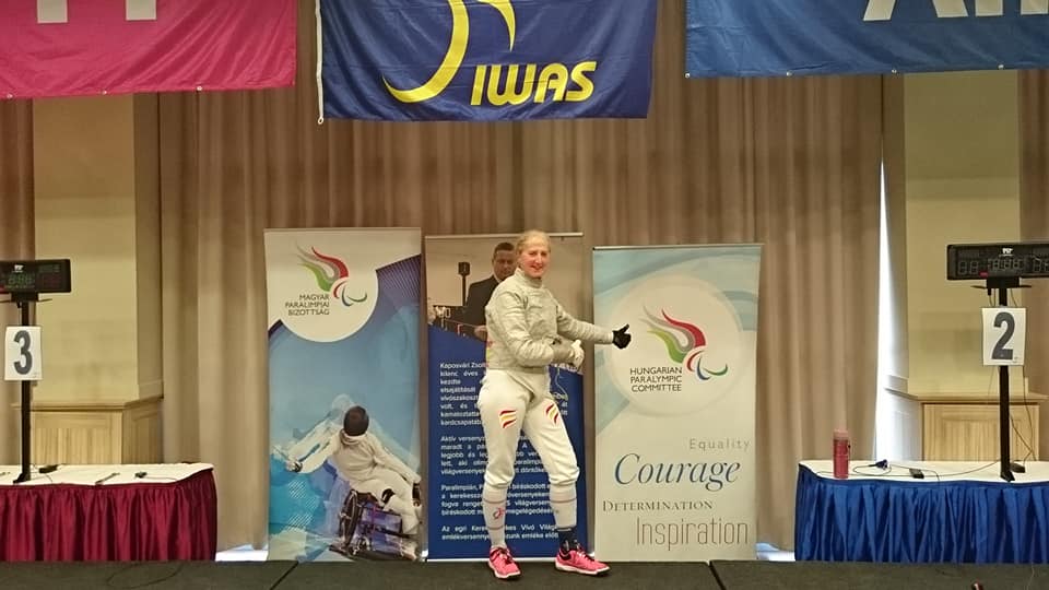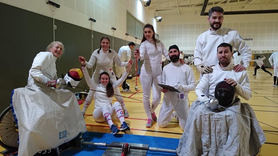 El VCE es el mejor Club de Esgrima que hay en toda España, pensad que es un Club donde entrenamos todos. Además y sin excepción os sentáis conmigo a entrenar, desde los pequeños a los mayores, un Club que tiene unos valores excepcionales de compañerismo y de saber estar. Gracias a todos desde los mas pequeños esgrimistas a los mayores, internacionales incluidos que tiráis conmigo, sin vosotros yo no tendría este nivel internacional que tengo, y que sepáis que cuando vaya a Tokio una parte de vosotros estará conmigo allí. Competimos 4 chicas en la Liga de Equipos, las ‘Damas y Caballeras’, contra 5 equipos de chicos del VCE que tienen que enfrentarse contra mi también en silla de ruedas.