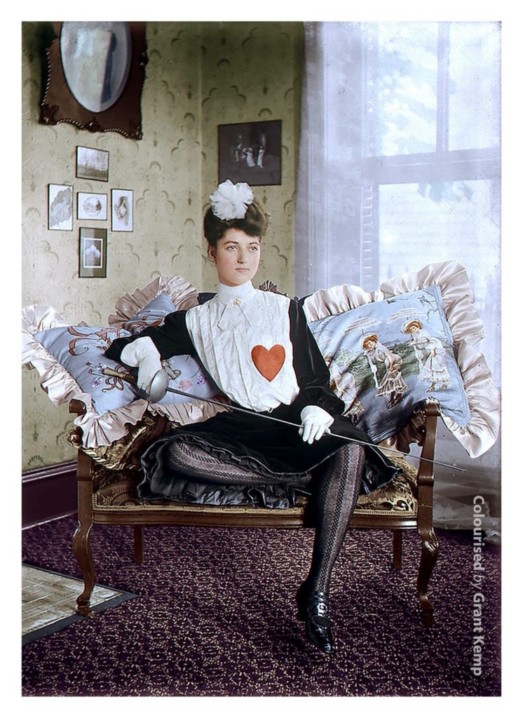 Sensacional trabajo el que han hecho en este sitio de FOTOGRAFÍA ANTIGUA. Grant Kemp colorea una foto de una esgrimista hecha en torno al año 1900, con un resultado realmente espectacular.
