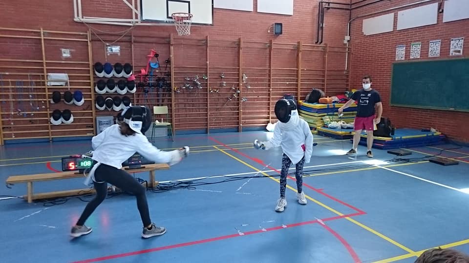 Siempre controlando las distancias interpersonales, con las mascarillas bien ajustadas, hasta el momento de ponerse la equipación, donde la distancia de esgrima nos protege.