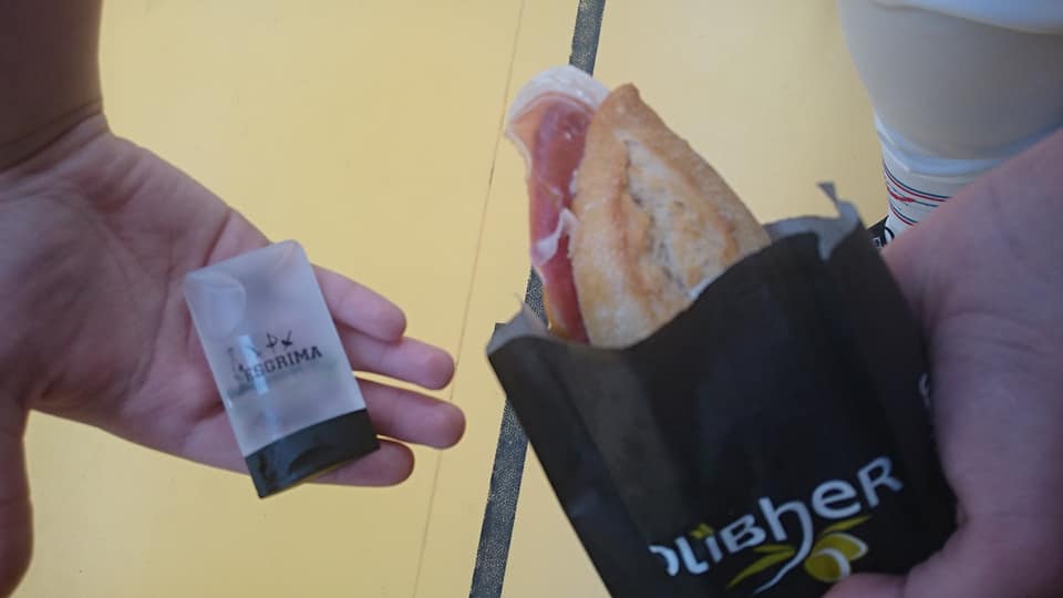 Nos llevamos al terminar, un bocata y un minibote de gel para redondear la jornada.