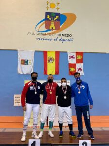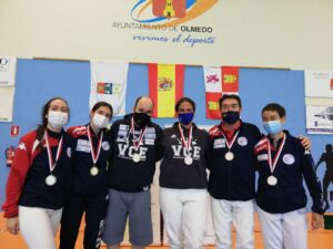 En la categoría de VETERANOS, Angel González consiguió BRONCE en FLORETE. En sable veteranos, Jorge Díez SUBCAMPEÓN con Alfonso Sanz en el BRONCE.