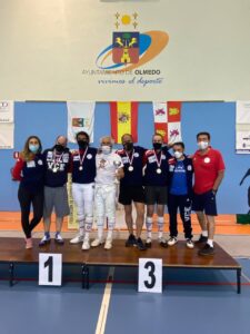 Destacar el potencial en la espada femenina donde 7 der las 8 mejores fueron del Valladolid, con PLATA para Mónica Peláez y BRONCES para Carmen Hernánz y Camille Darrase que acompañaron a María en el podio.