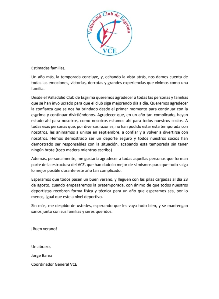 Desde el Valladolid Club de Esgrima queremos agradecer a todas las personas y familias