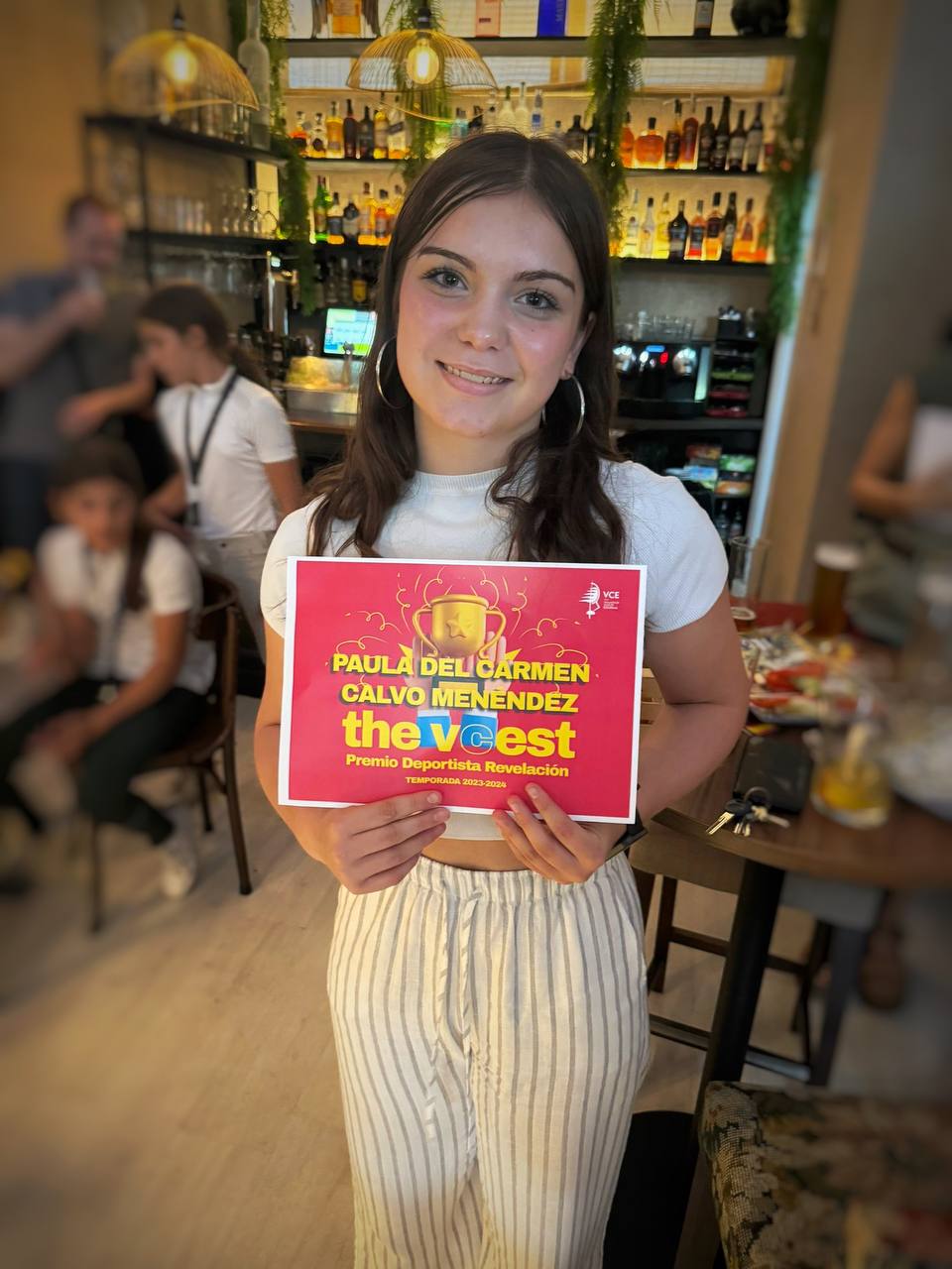 Tras la asamblea, se celebró la fiesta de fin de temporada, donde tuvimos la oportunidad de entregar los Premios VCEST, unos galardones que reconocen el trabajo y el esfuerzo de nuestros deportistas y de aquellas personas que mejor personifican los valores de nuestro club. El premio al mejor deportista de la temporada fue para María Mateos, que gracias a los votos de las personas asociadas se impuso al equipo femenino de espada. El premio al deportista revelación fue para Paula Calvo, que fue ampliamente votada por sus compañeros de club. Por último, Víctor Ballesteros se llevó el premio Familia VCE, un reconocimiento a su trayectoria y compromiso con el club.