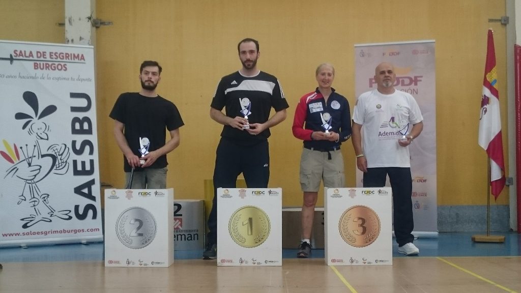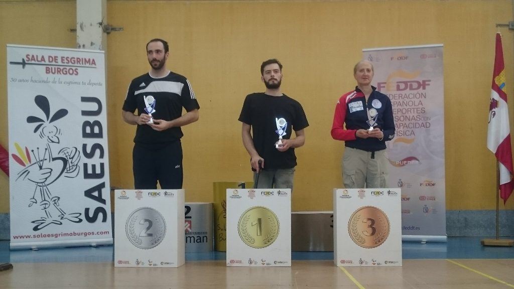 En la última prueba del CAMPEONATO DE ESPAÑA en Silla de Ruedas, se hizo con 2 BRONCES en ESPADA y SABLE.