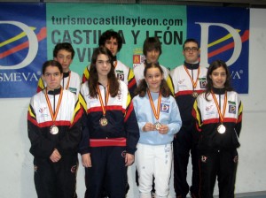Poco después, a las 12’00, comenzaban los infantiles masculinos y femeninos con las poules y después los cuadros de eliminación directa, donde ya se pudo ver algún asalto de gran esgrima y de fuerte y sana competición.