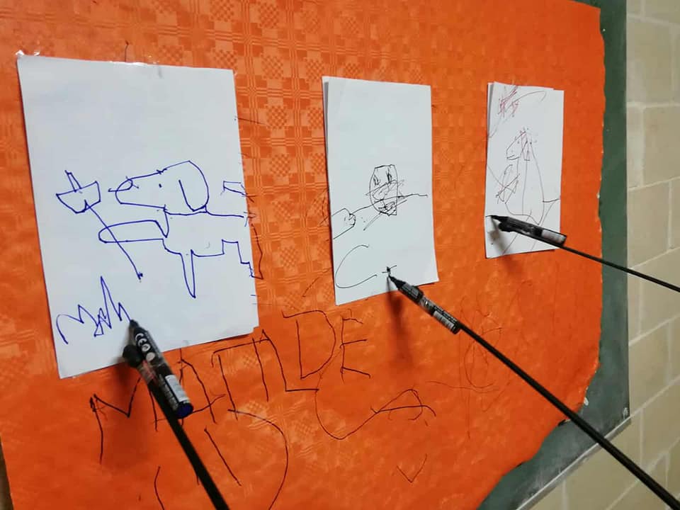 Con un rotulador en la punta de la espada, consiguen mejorar su control del arma y la psicomotricidad fina.