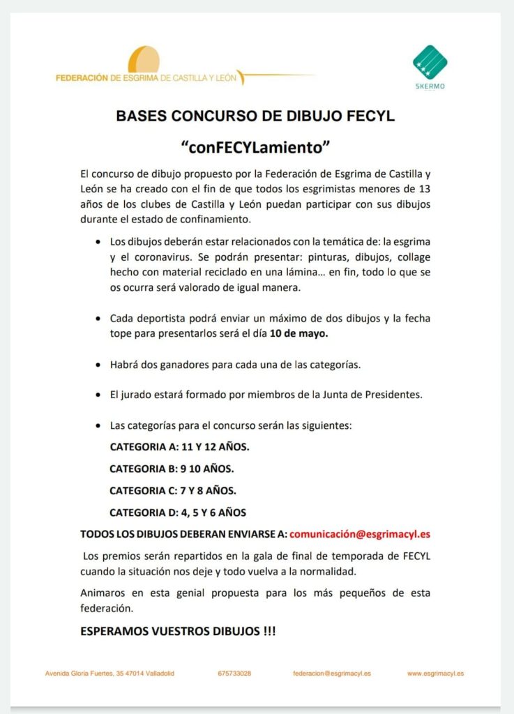 El concurso de dibujo propuesto por la Federación de Esgrima de Castilla y León se ha creado con el fin de que todos los esgrimistas menores de 13 años de los clubes de Castilla y León puedan participar con sus dibujos durante el estado de confinamiento.