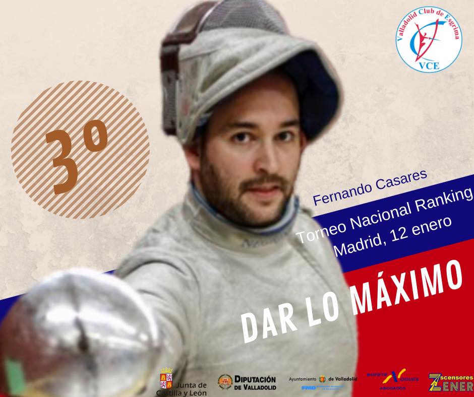Fernando Casares, participó en el Ranking Nacional de Madrid de SABLE, donde consiguió un BRONCE tras un pleno de victorias en la fase de grupos e ir venciendo sus eliminatorias hasta llegar a semifinales donde cayó con Hernández por un ajustado 15 a 13. Esta tercera posición, lo mantiene en lo alto de la clasificación como uno de los mejores de España.