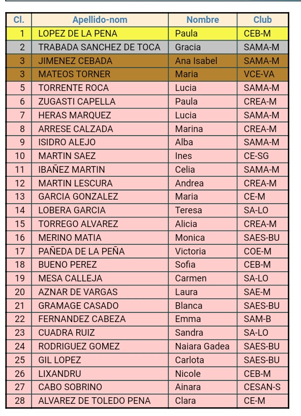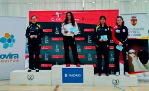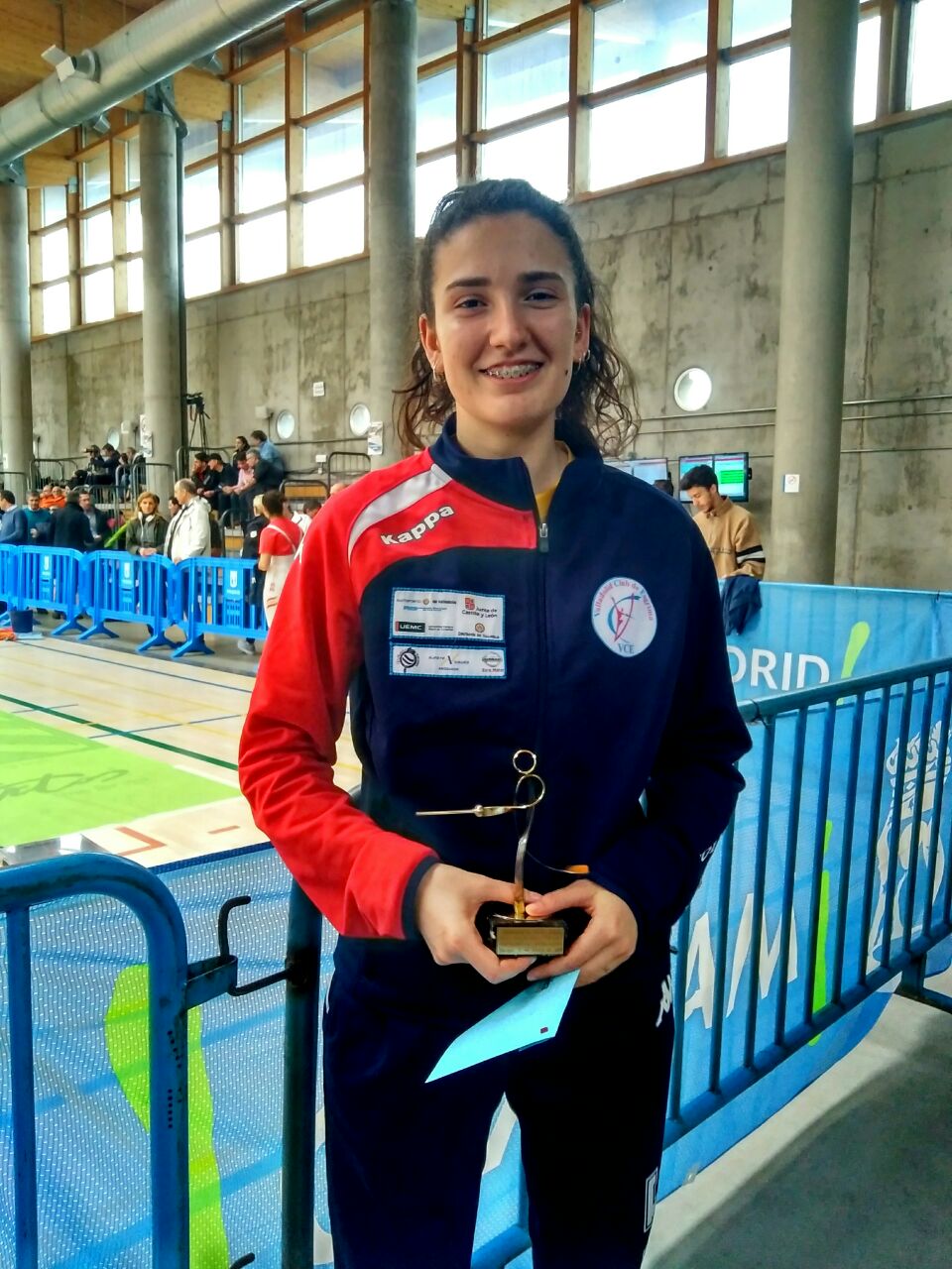 Mientras tanto, María Mateos, tras su paso por la poule y su número 1 en la primera fase, pasó exenta la primera eliminatoria, clasificada directamente para el cuadro de 16 en el que derrotó a Alicia Torrego del Alcobendas. Ya en el cuadro de las 8 mejores ante Marina Arrese, también del Alcobendas, venció con autoridad 15 a 9, clasificada ya para semifinales. En la lucha por el oro, contra la de Barajas, Paula López, María tuvo un duro asalto con alternativas para ambas, pero acabó cayendo ante la madrileña y posterior campeona, por un ajustado 15 a 11. María se ganó un BRONCE muy merecido, siendo la 3ª de España en la categoría Junior.