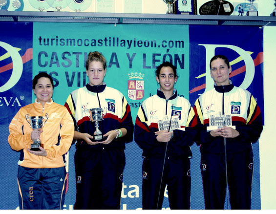 En el primer asalto de cuartos Teresa Delgado derrotaba a su compañera Gracia Horno por 15 a 14; Dóra Kiskapusi a su compañera Andrea Martín por 15 a 13; Macarena Centenera a otra compañera Laura Gutiérrez por un contundente 15 a 3 y María Steinberg del CREA vencía a la burgalesa López por 15 a 12. Se componía el pódium con el pasado, presente y futuro del Dismeva. En la primera semifinal Teresa Delgado vencía a Steinberg por 15 a 12 y Dóra Kiskapusi a Macarena Centenera por 15 a 6. Steinberg y Centenera bronce.