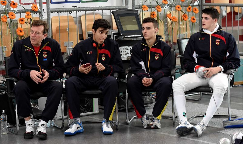 Ya en lo referente a equipos, el español masculino lo integraban Rodrigo Alegre Ballesteros, de la Sala de Esgrima de Burgos; Javier Fernández Pérez, de la Sala de Armas Europeo de Las Rozas; Salvador Gómez Serna, del Club de Esgrima Lázaro Cárdenas y el vallisoletano Guillermo Nieto. Polonia y su contundente 45-33 les impidieron optar a más, pero la victoria 43-41 contra el grupo portugués les dio el decimoquinto puesto.