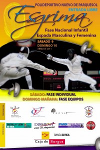 Este fin de semana se va a disputar en Valladolid la fase de clasificación para el Campeonato de España Infantil que se disputará el próximo 7 de Mayo. Tendrá lugar en el nuevo Polideportivo Lalo García, sito en la calle Enrique Cubero del barrio de Parquesol. La llamada para la espada masculina individual será el sábado a las 9’00 horas, teniendo previsto el comienzo a las 9’30. La confirmación de tiradoras se hará desde las 10’30 hasta las 10’45, comenzando la competición a las 11’00.