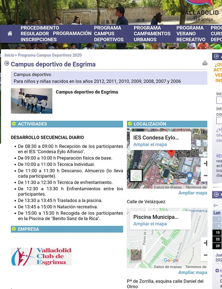 CAMPUS de ESGRIMA en julio. En IES Condesa Eylo y Piscina Benito Sanz. - Valladolid Club Esgrima