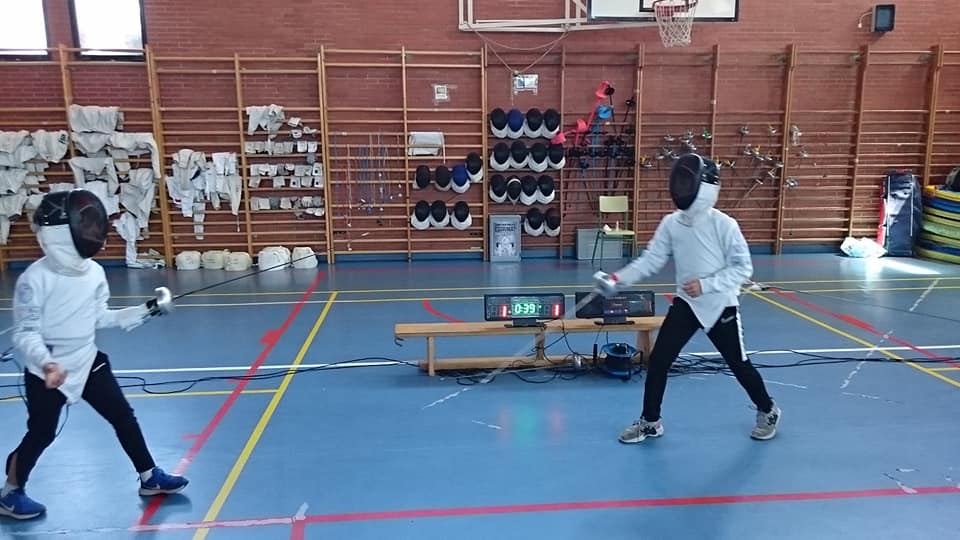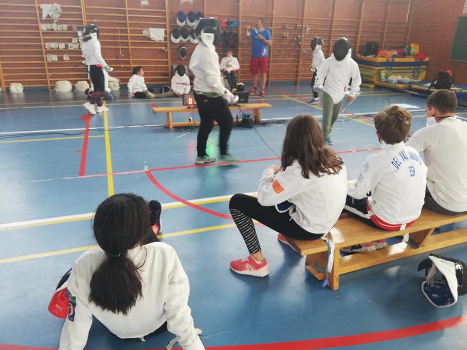 Siempre controlando las distancias interpersonales, con las mascarillas bien ajustadas, hasta el momento de ponerse la equipación, donde la distancia de esgrima nos protege.