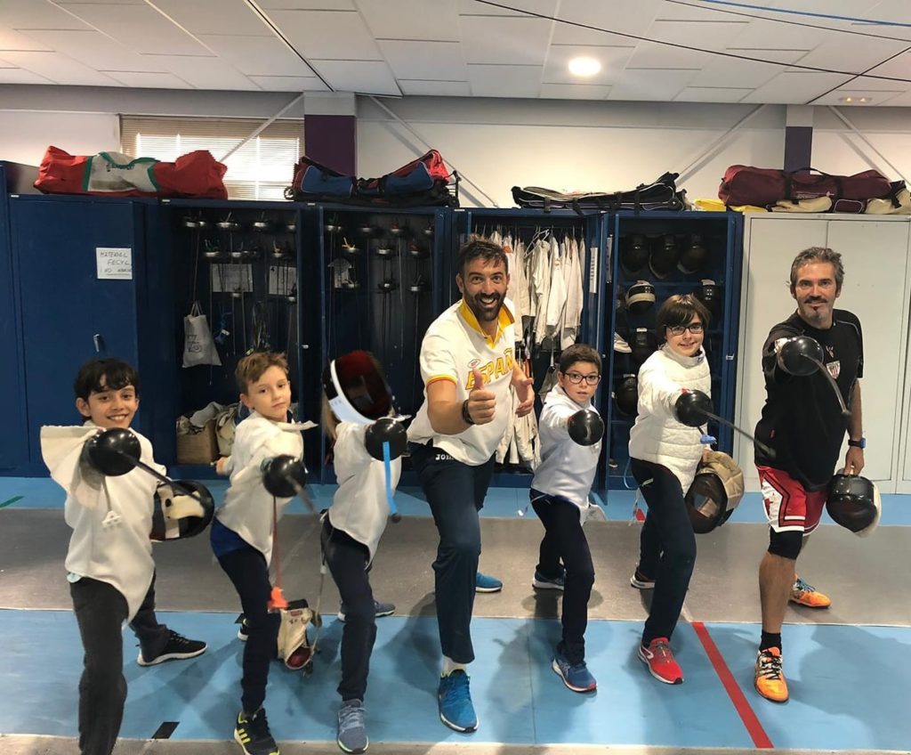 Aprovechando la concentración de los equipos nacionales militares de esgrima y pentatlon aeronáutico en la sala del #CEARRíoEsgueva, nuestros jóvenes esgrimistas coincidieron con Pirri compartiendo el espacio.
