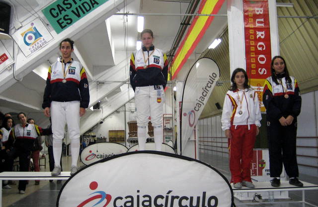 En junior (M-20) femenino también victoria para Burgos. Las dos representantes vallisoletanas del Dismeva , Laura Lalana y Andrea Martín tuvieron desigual suerte. Laura Lalana que optaba a medalla se quedó en cuartos al perder por la mínima, 14 a 15,  ante la burgalesa Capilla, finalizando en 5ª posición. Por su parte Andrea Martín ganó en la semifinal ajustada por 15 a 14, pero en la final nada pudo hacer ante la burgalesa Sanz perdiendo por 5 a 15 y colgándose la plata.