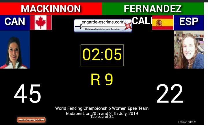 Desafortunadamente el encuentro se puso muy rápido cuesta arriba. Tras los dos primeros relevos de Sara Fernández y Sofía Cisneros, Dora salió a la pista contra Ariane Leonard con un 1 a 10 muy cuesta arriba. Tras un 1 a 5, estaban en contra con un 2 a 15. La cosa pintaba muy mal, pero de cualquier modo trataron en todo momento de levantar la moral e intentar hacer todos los puntos posibles. Perdieron todos los parciales, pero consiguieron al menos hacerlo por 4 a 5. Por fin entraban los tocados, pero no fue suficiente para meterse en el asalto y terminaron cayendo por un contundente 22 a 45 que las dejaba fuera del cuadro de 16 y eliminadas en la posición 17.
