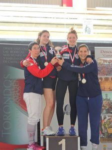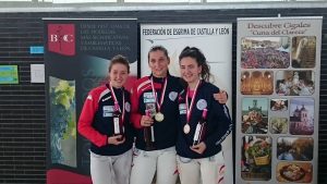 Dora vencía a su compañera María en la revancha de la final del Nacional de Valencia y Naiara caía ante Inés Martín del Segovia. La final ante Dora e Inés comenzó con una amplia ventaja para la del Segovia, que Dora conseguía empatar al final del segundo tiempo. Tras un tercer tiempo magistral, el asalto dio la vuelta para la de Valladolid, que vencía en un alarde de concentración sensacional. Dora Kiskapusi es la nueva CAMPEONA CASTELLANA de ESPADA. Sus compañeras Naiara Moreno y María Mateos, fueron BRONCE acompañándola en el tercer peldaño del podio.