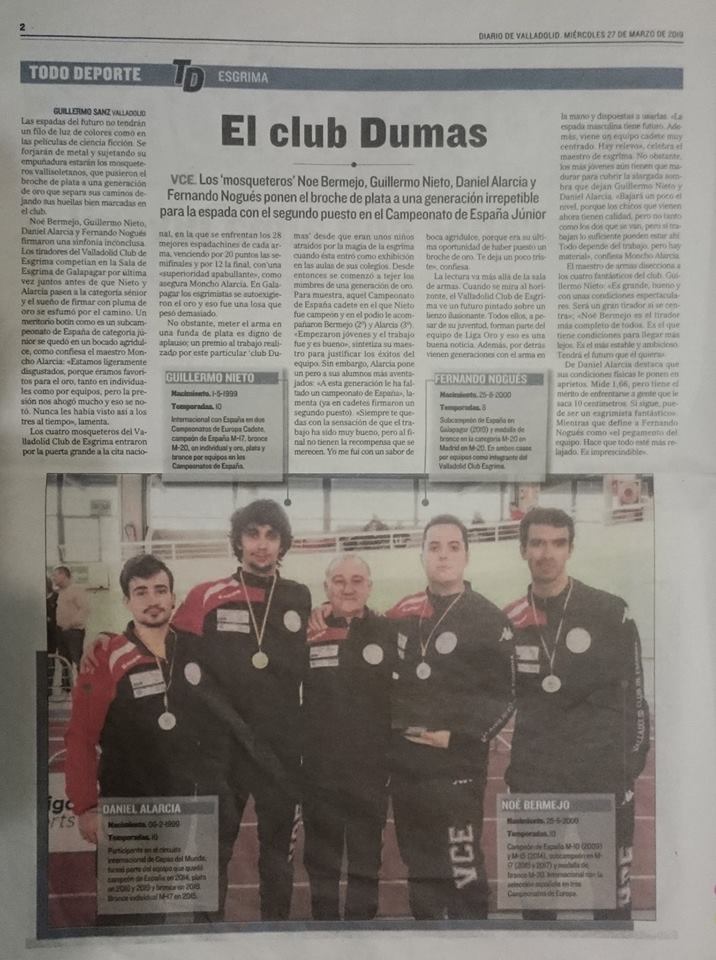 El club Dumas por Guillermo Sanz (El Diario de Valladolid-El Mundo). Todo Deporte