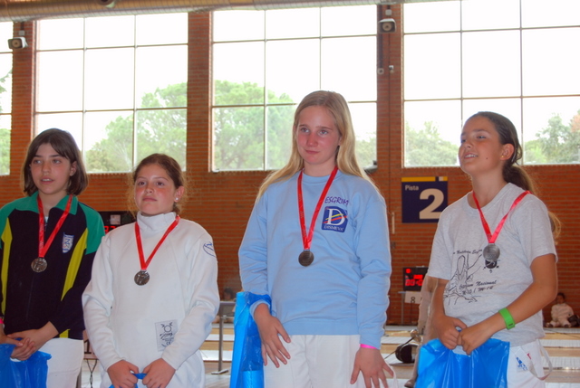 En chicas llegó la primera medalla. María Espinel solamente vencía 1 asalto y terminaba la 57, Inés Martín puntuaba 2 victorias y 4 derrotas y terminaba 43; Carmen Gil, con 3 victorias y 3 derrotas, terminaba 37; y Elisa Martínez, con 3 victorias y 3 derrotas terminaba 26 pero 6º en la clasificación de su año, lo cual le daba acceso al único cruce de las medallas. No hubo suerte y perdió 6 a 10 ante la madrileña Calvo, quedándose con la plata.